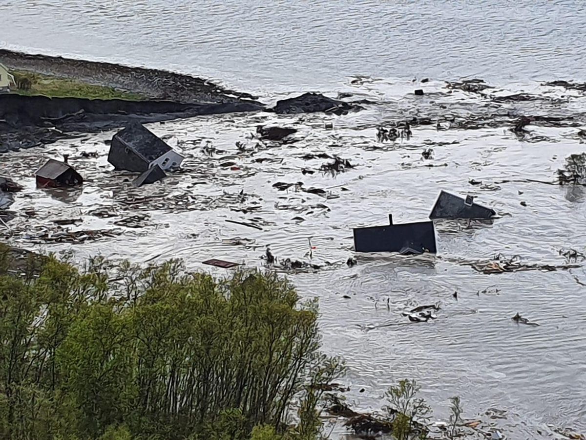 In norwegen hat ein erdrutsch gebäude verschoben oder einstürzen lassen.